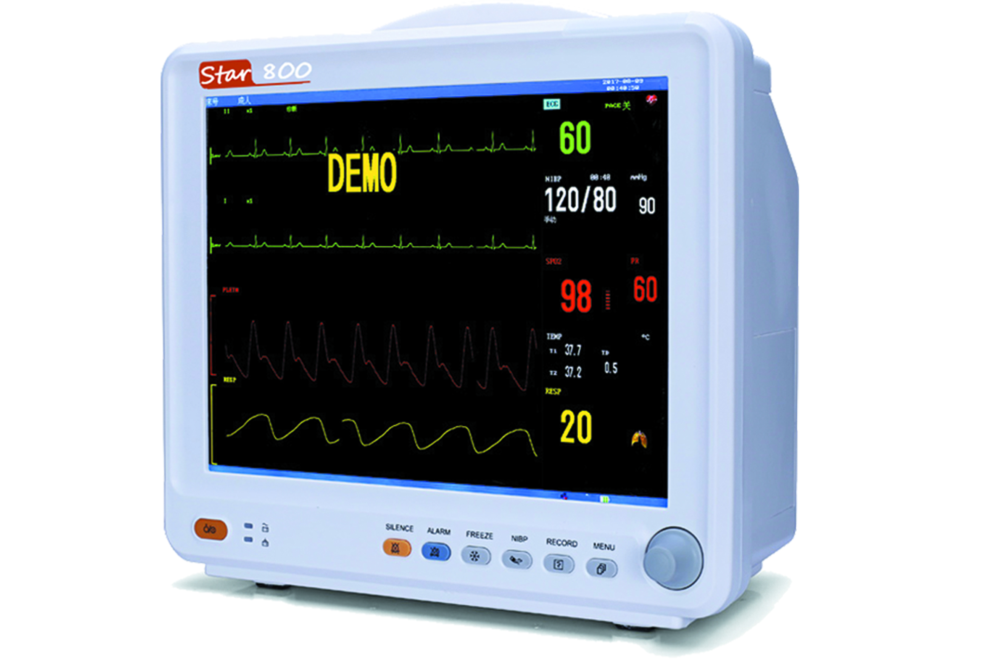 - ECG, SPO2,PR,NIBP,RESP,TEMP